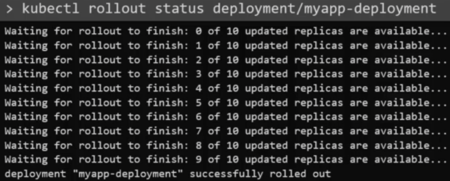 rollout 상태 확인: kubectl rollout status deployment/myapp-deployment