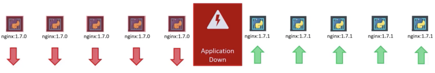 삭제되고 생성되는 과정에서 application이 작동이 안되는 downtime이 존재한다.