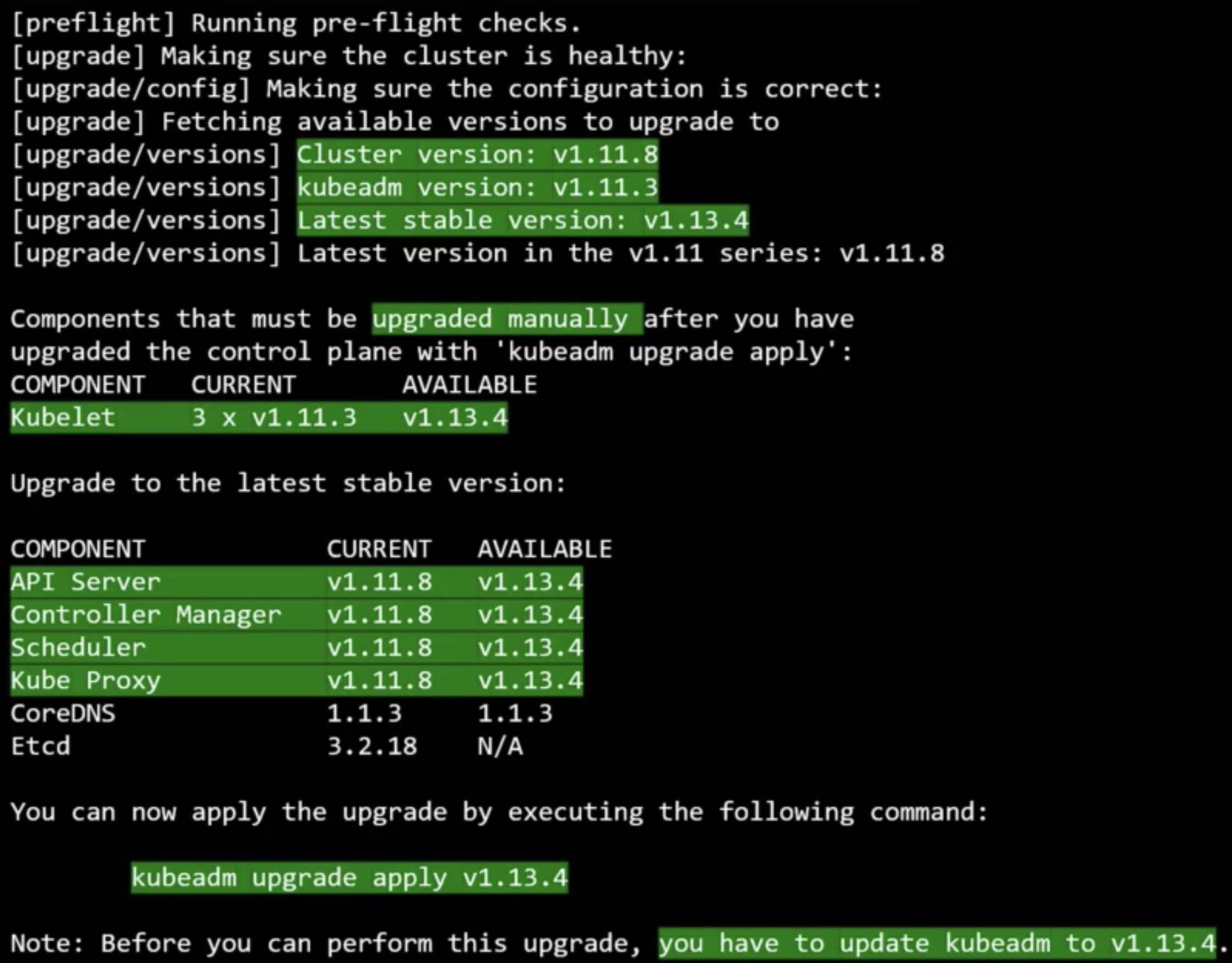 - upgrade 정보 확인: kubeadm upgrade plan - 현재 버전, upgrade 가능한 버전