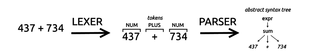 - Lexer: 소스 코드(컴퓨터 입장에서는 문자)를 입력받아 여러 개의 토큰으로 변경시킨다.