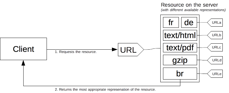 - 언어, 인코딩 혹은 타입 등 컨텐트 협상(content negotiation)