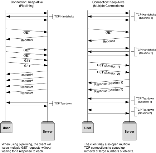 - 지속적이고 파이프라인 된 연결(persistent and pipelined connections)